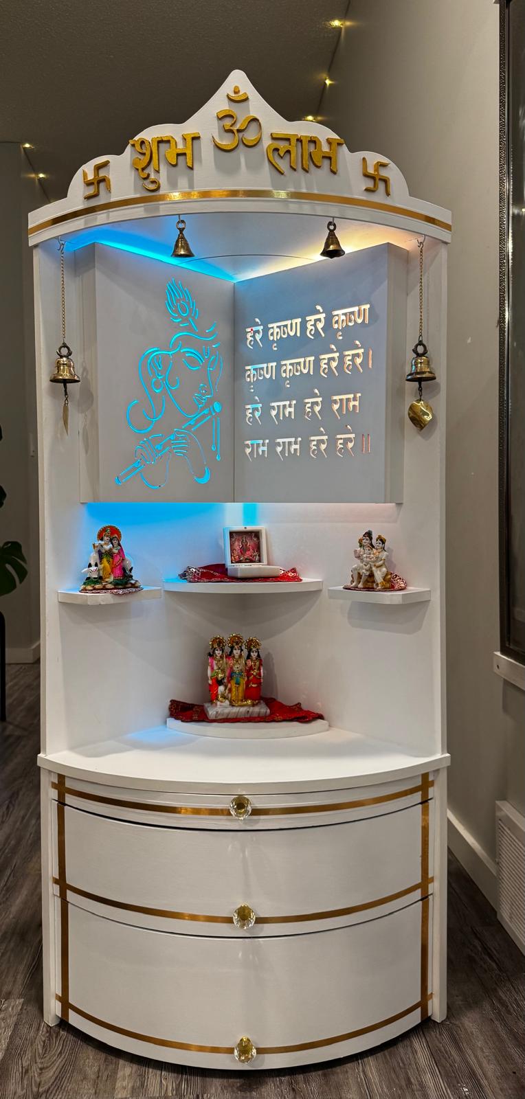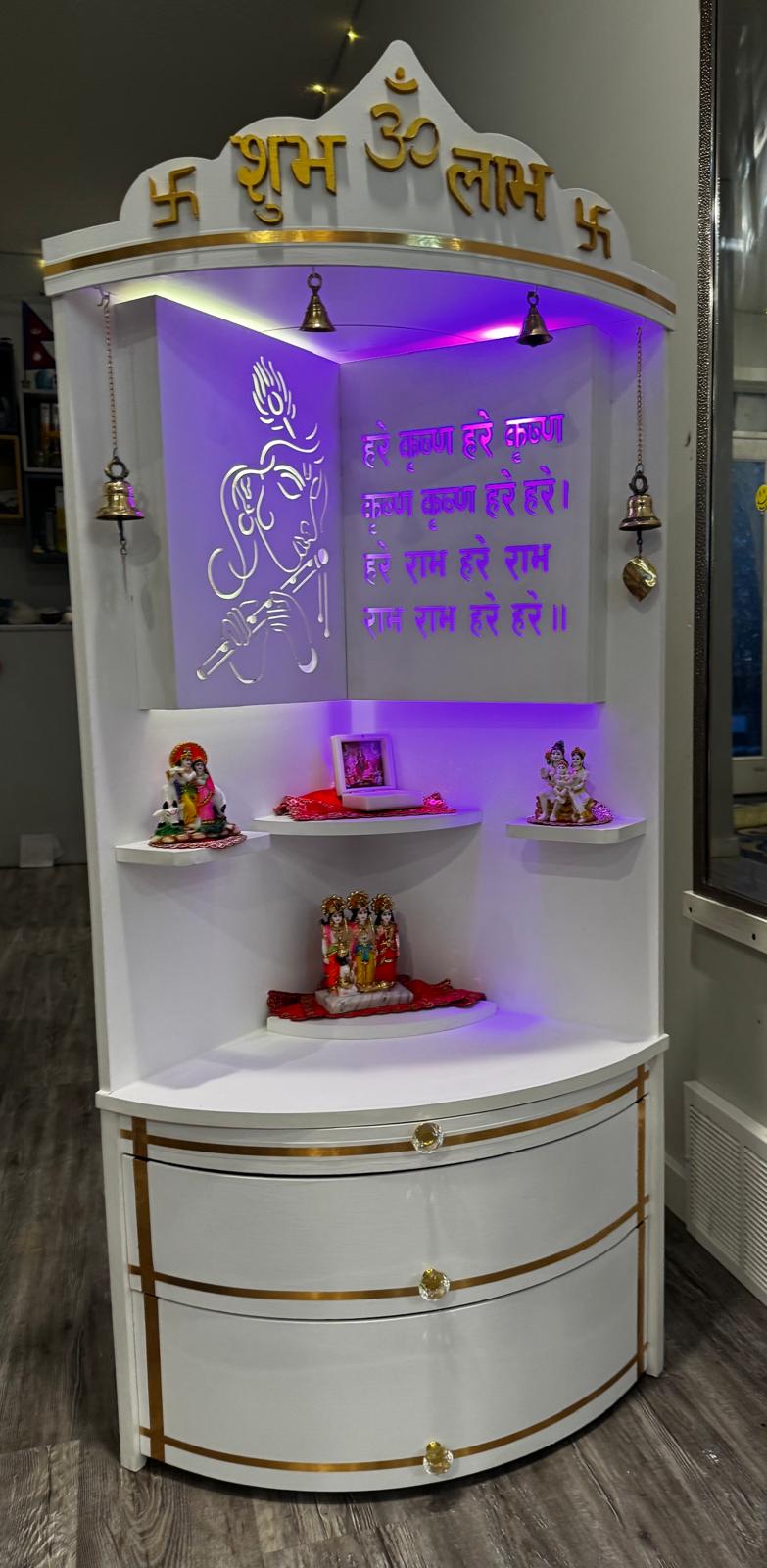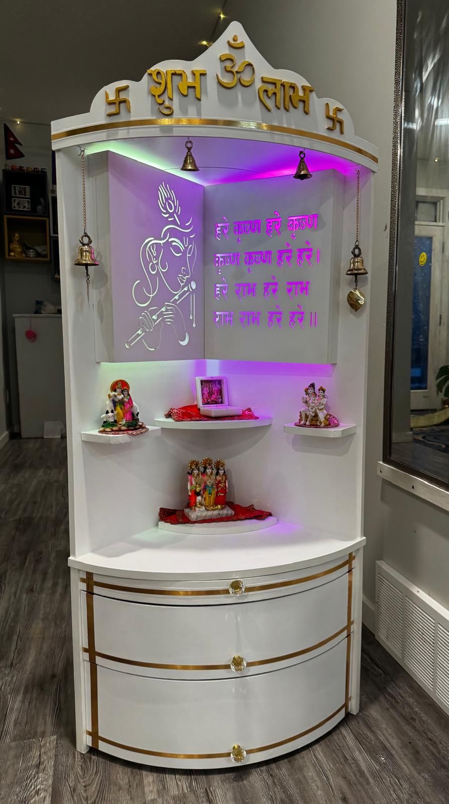 With its thoughtful corner-friendly design and practical storage, this temple creates a peaceful and sacred prayer space while blending beautifully with modern interiors.