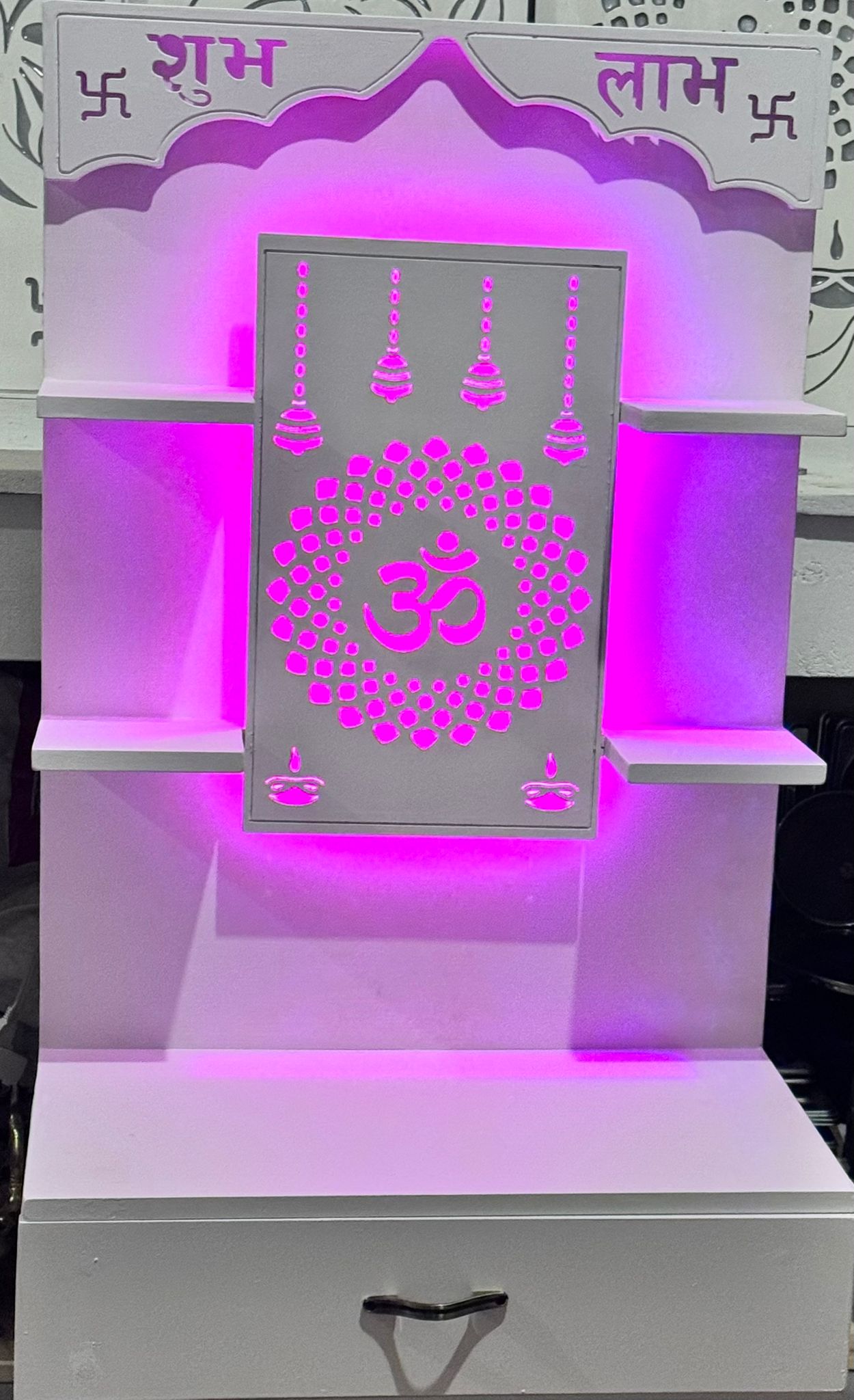 Illuminate your devotion with this elegant handcrafted Mandir, beautifully enhanced with colour-changing LED lights that add a divine aura to your pooja space.